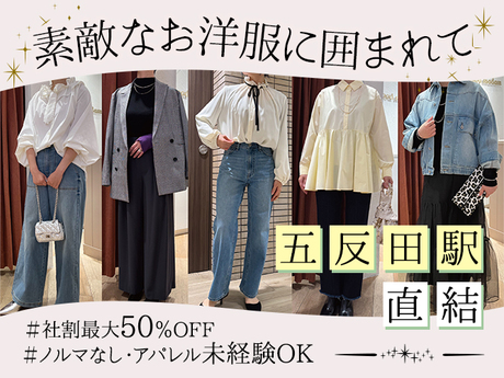 【アパレル販売スタッフ】18時以降は時給1500円☆ラストまで働ける方歓迎☆駅直結で通勤も楽々☆